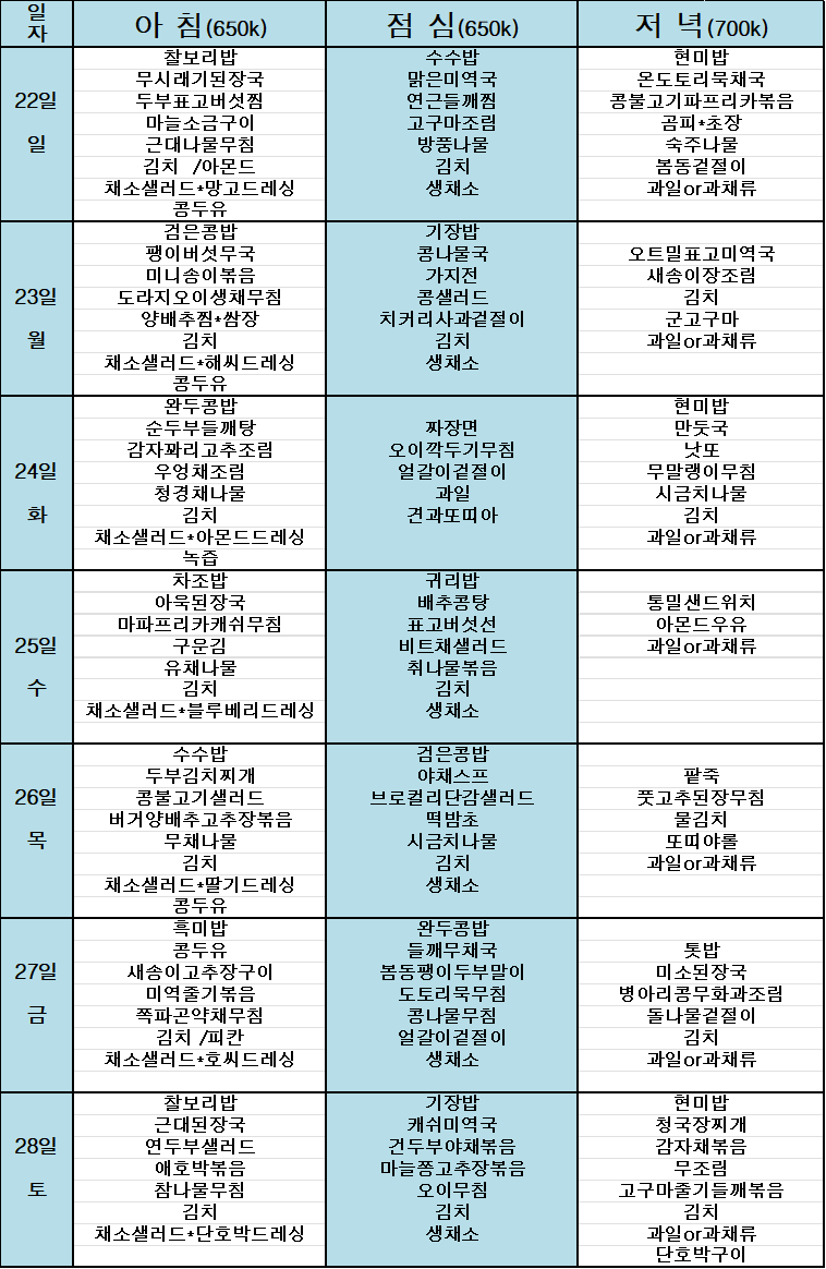금주의 식단