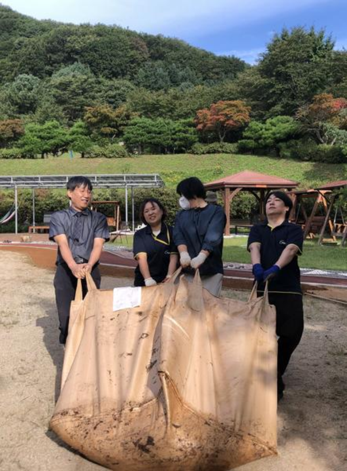 맨발걷기 참 좋은 계절이 다가왔죠? 그리고 에덴병원 운동장에 마련된 황톳길은 접근성이 너무 좋아 환우들의 최애 장소 이기도 합니다. 적절한 타이밍에 더 좋은 환경을 만들어 드리기 위해 여름비로 씻겨나간 황토를 보충하는 작업을 직원들이 직접 해 보았습니다~^^
