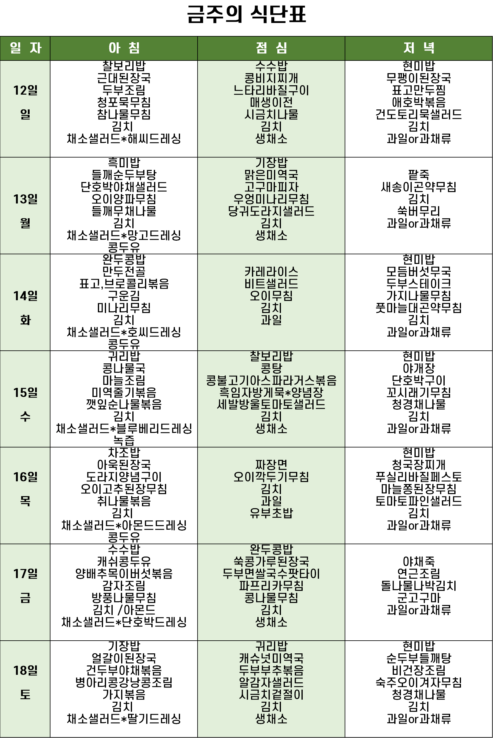 금주의 식단