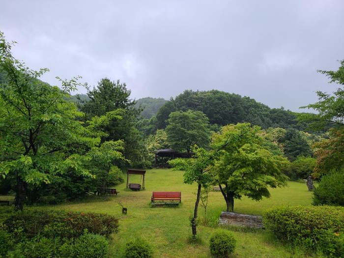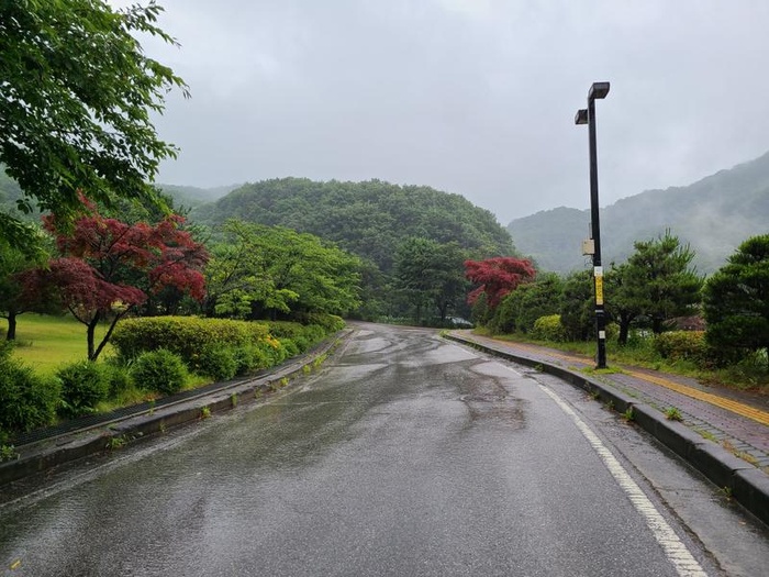 비 때문에 우중충하다기보다는 나무들의 싱그러움과 공기의 상쾌함이 먼저 눈과 마음을 사로잡는 하루