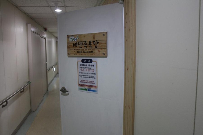 12월 12일, 에덴족욕탕이 열렸습니다. 아로마탕, 맥반석탕, 청정수탕 3개의 탕으로 구분하여 운영되는 족욕탕이 환우들의 건강 증진에 도움을 주고, 특히 여러 환우들이 모여 이야기하며 심신의 피로를 풀어줄 따뜻한 공간이 되길 희망합니다.
