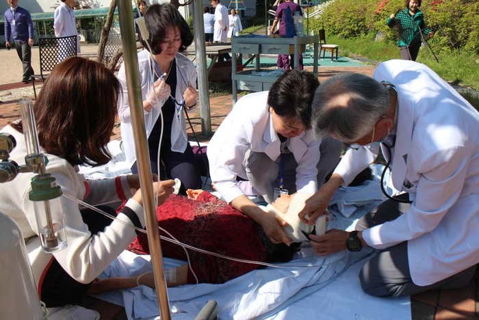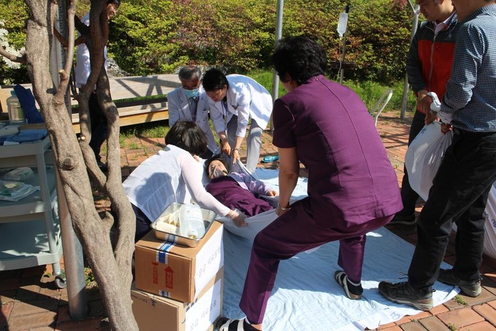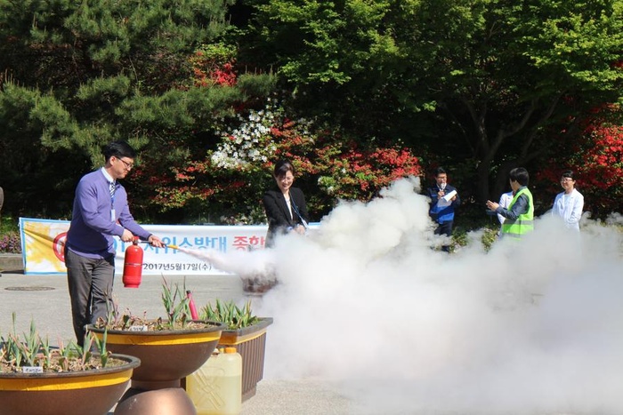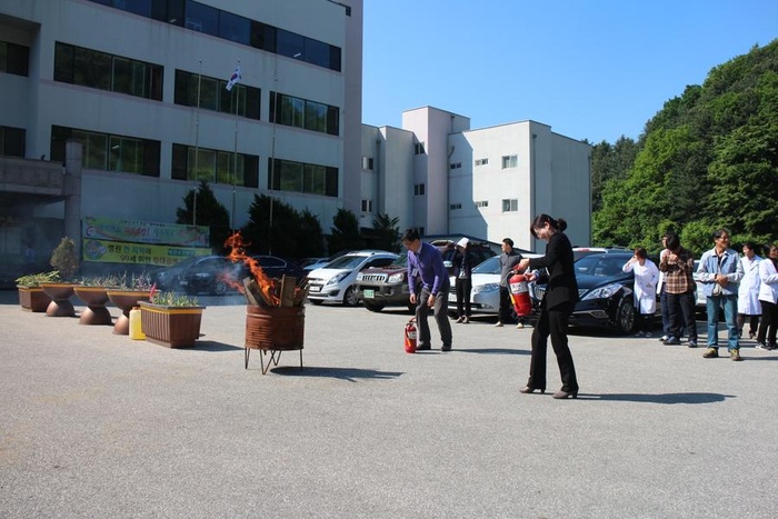 실제 경보를 시작으로 소화기와 소화전을 이용한 소화훈련, 중환자 후송 및 처치, 피난유도훈련, 물품 반출 및 방호 복구훈련까지 전단계에 걸친 모의소방훈련을 통해 화재에 대한 경각심, 화재예방의 중요성, 화재 시 각자의 임무 등을 되새겨 보았습니다.