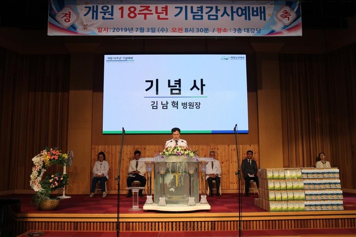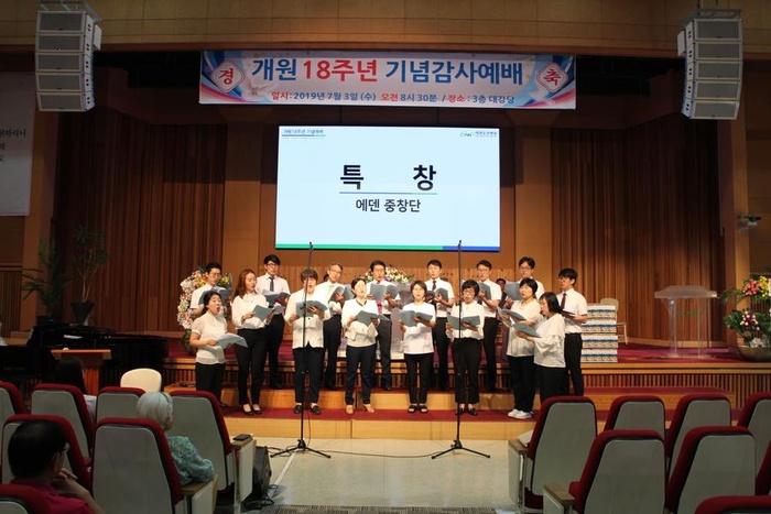 7월 3일, 에덴요양병원 전 직원이 강당에 모여 개원 18주년을 기념하였고, 미션데이 행사를 진행하였습니다.