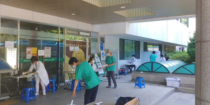 코로나19로 인해 직원건강검진이 실외에서 진행되었습니다.