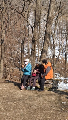 산책로 0.9Km 지점, 환우들이 옹기종기 모여앉아 담소를 나누고 있다는 소식에 달려가 보았습니다. 자연탐사관인 별새꽃돌을 설립하신 최종걸교수님(환우)을 중심으로 여러 환우분들이 새를 보며 힐링의 시간을 갖고 있지 뭐에요! 근데 이 새들은 도대체 어디서 왔고, 왜 여기에 와 있나 보니, 최교수님이 아침마다 모이를 주신다고... 새들도 행복한 에덴병원입니다~^^