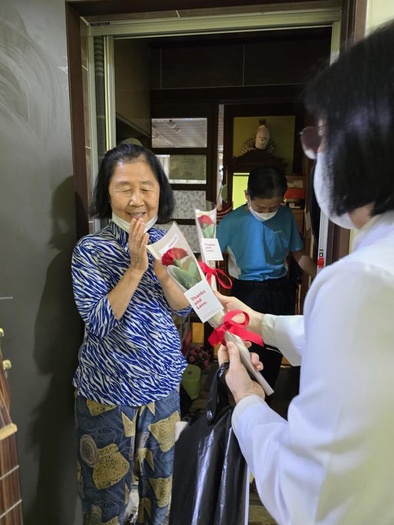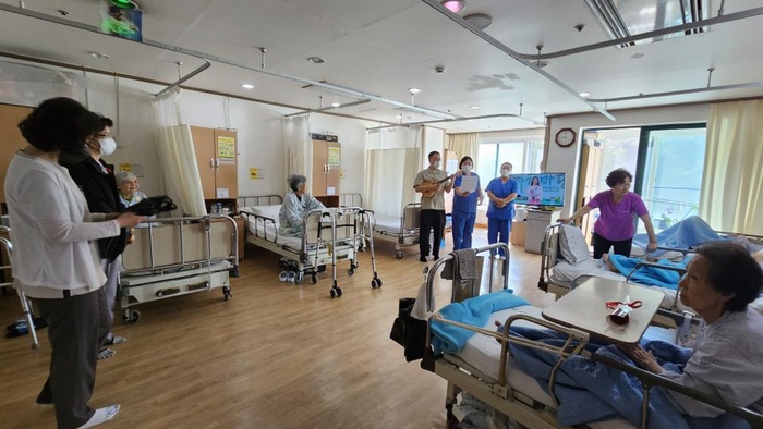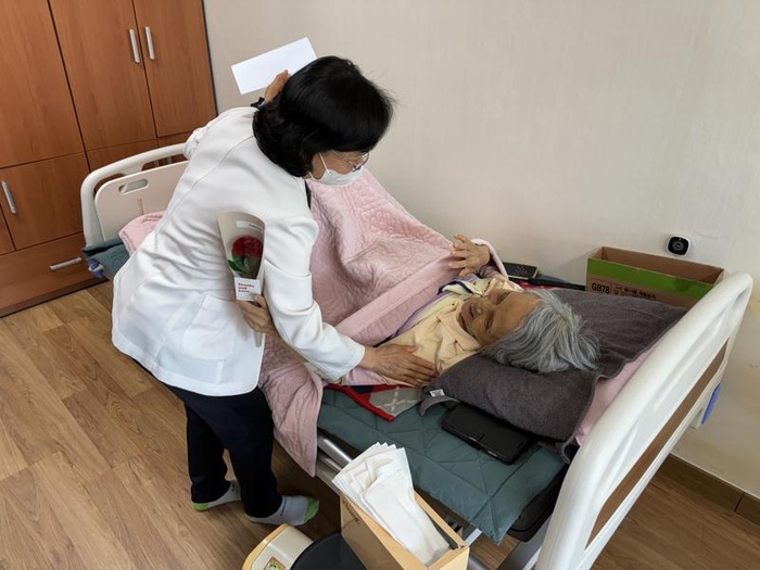 5월8일 어버이날! 코로나로 잠시 중지되었던 어버이날 행사를 재개했습니다. 투병생활로 가족과 떨어져 있어 외로우실 환우들을 모든 직원들이 구역을 나누어 직접 찾아뵙고 '어버이 은혜'도 불러드리고 카네이션도 전달해 드리는 뜻깊은 시간을 가졌답니다. 환우와 직원 모두가 기쁘고 행복한 감동의 시간이였다죠!