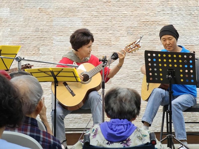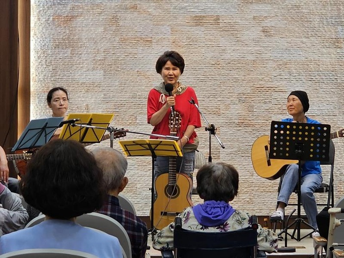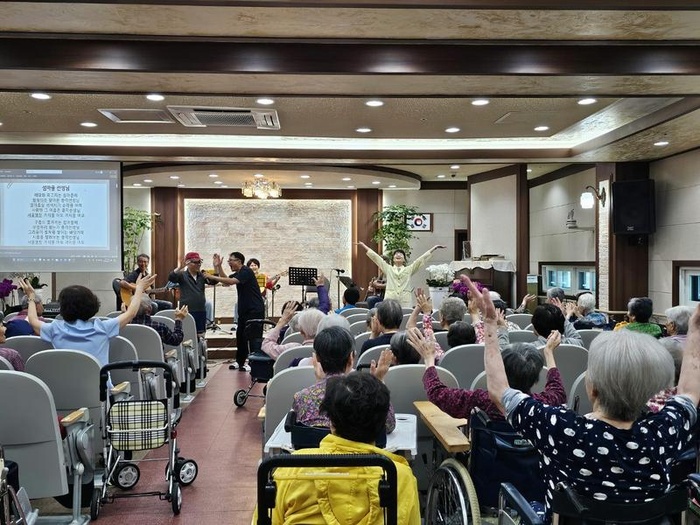 에덴요양병원 기타동아리에서 자매 기관인 에덴노인센터를 방문하여 어르신들을 모시고 위문공연을 진행했습니다.