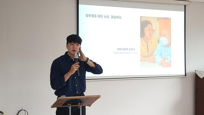 소아암 투병 당시 받은 희망을 다시금 새로운 희망으로 선물하고자, 현재 소아암 그리고 난치병, 장애와 싸우는 아이들에게 소원을 이루어주며 공감과 위로와 웃음으로 희망을 나누고 있는 유튜브 채널 '도위시'를 운영하고 있는 이도열님을 모시고 지난 8월21일(목) 오후4시 B1웃음치료실에서 특별 강의가 진행되었습니다. 진심으로 공감하고 위로받는 값진 시간이였습니다. 먼길 기꺼이 오셔서 특별한 강연을 해주신 이도열님께 진심으로 감사드립니다!