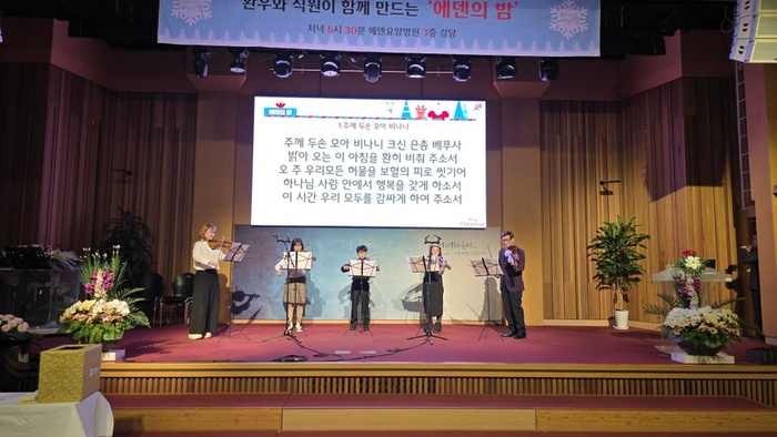 지난 12월 24일 크리스마스 이브, 엄청난 선물과 환우들이 직접 꾸미는 다양한 공연으로 매년 이 맘때면 환우들을 설레게 하는 행사인 '에덴의 밤'이 열렸습니다. 7회를 맞은 이번 공연에도 환우들의 멋진 공연과 서프라이즈 공연들로 기쁨과 감동의 시간이 되었습니다. 참여하신 모든 환우와직원 여러분들께 다시한번 감사드립니다!